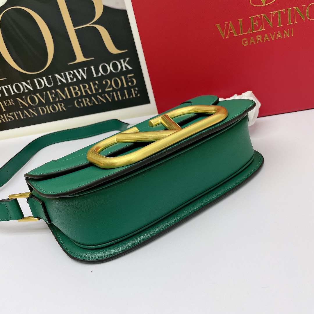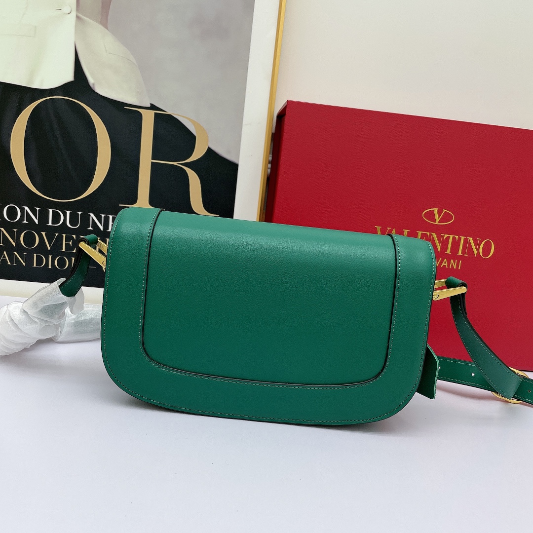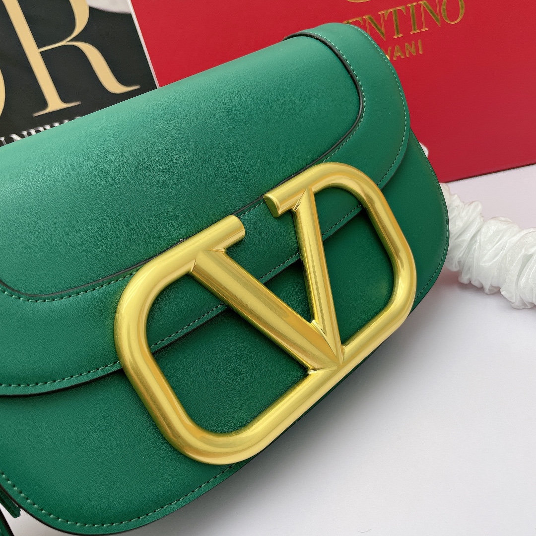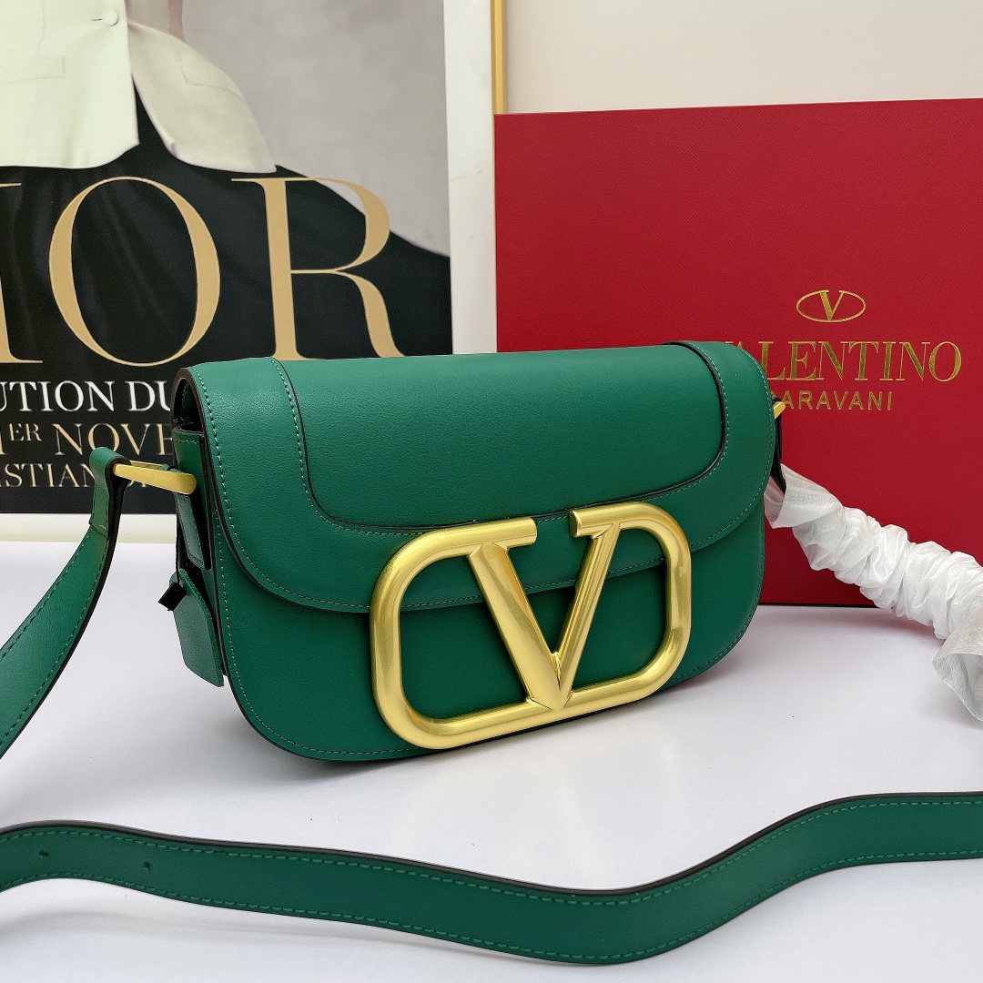 Valentino’s early spring runway collection features the Valentino Garavani MAXI Crossbody Bag, crafted from premium calf leather. The bag showcases a large metallic logo and comes with an adjustable shoulder strap. It is adorned with vacuum-plated metal hardware and a snap button closure. The interior boasts three storage compartments, one slip pocket, and ample capacity. The imported leather provides a soft and luxurious feel.