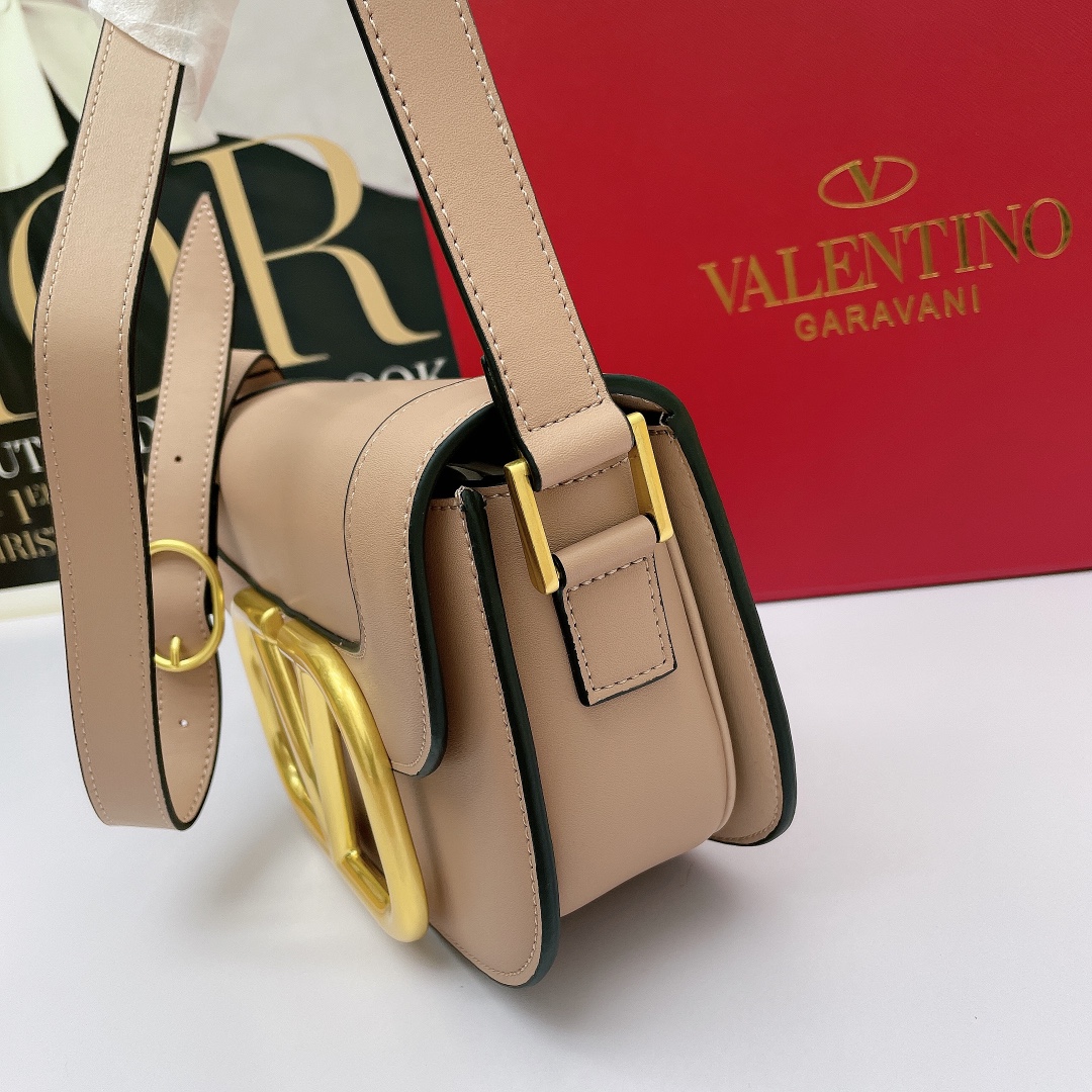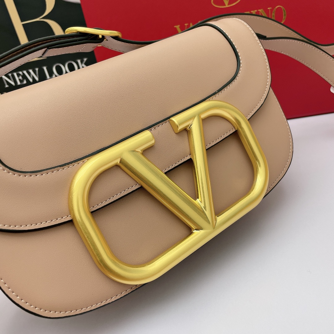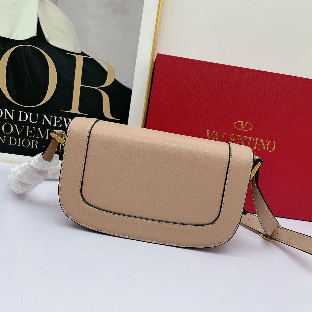 Valentino’s early spring runway collection features the Valentino Garavani MAXI Crossbody Bag, crafted from premium calf leather. The bag showcases a large metallic logo and comes with an adjustable shoulder strap. It is adorned with vacuum-plated metal hardware and a snap button closure. The interior boasts three storage compartments, one slip pocket, and ample capacity. The imported leather provides a soft and luxurious feel.