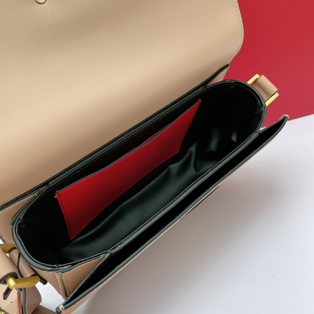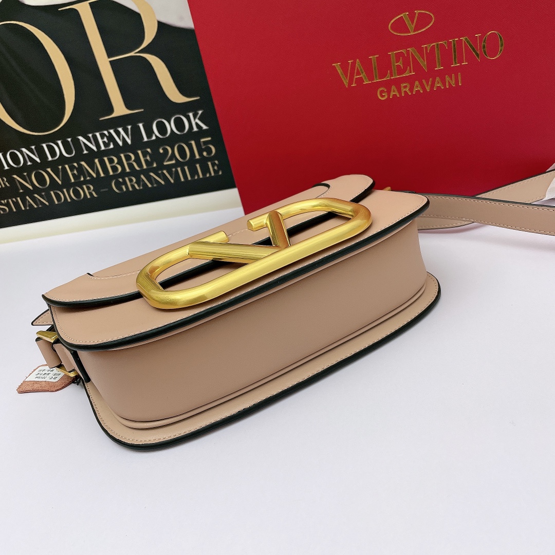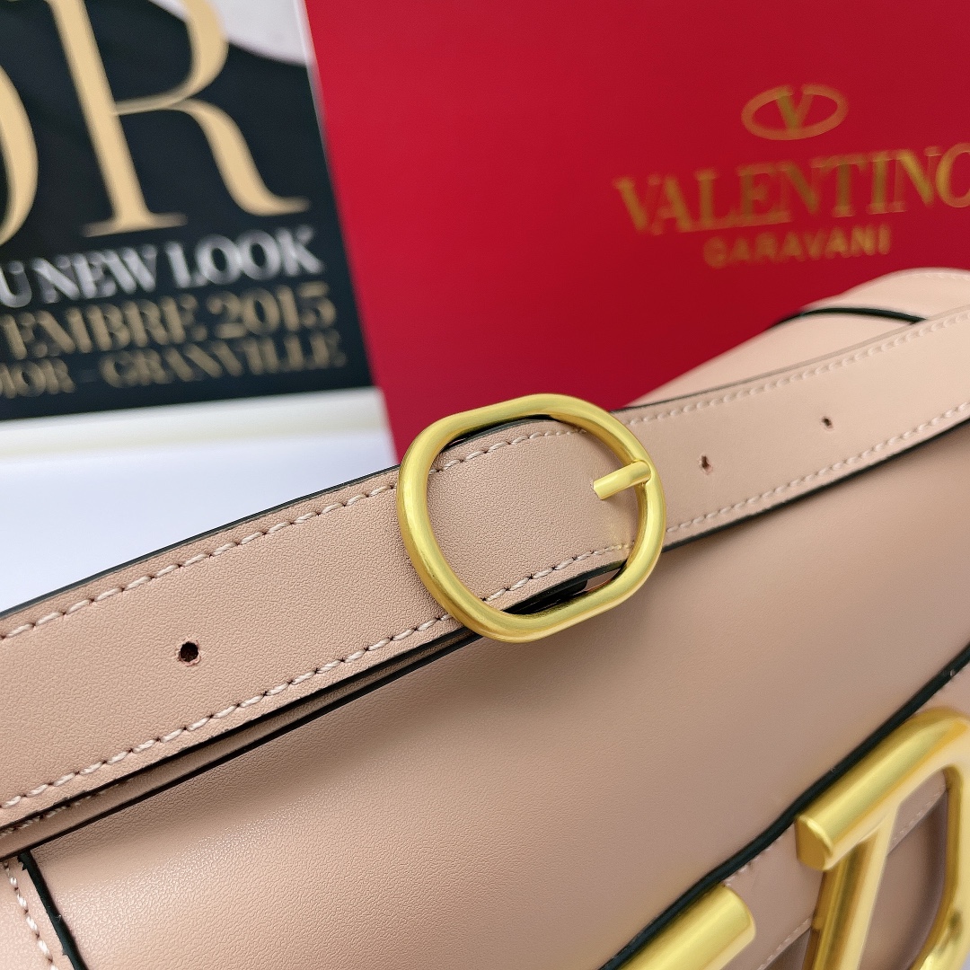 Valentino’s early spring runway collection features the Valentino Garavani MAXI Crossbody Bag, crafted from premium calf leather. The bag showcases a large metallic logo and comes with an adjustable shoulder strap. It is adorned with vacuum-plated metal hardware and a snap button closure. The interior boasts three storage compartments, one slip pocket, and ample capacity. The imported leather provides a soft and luxurious feel.