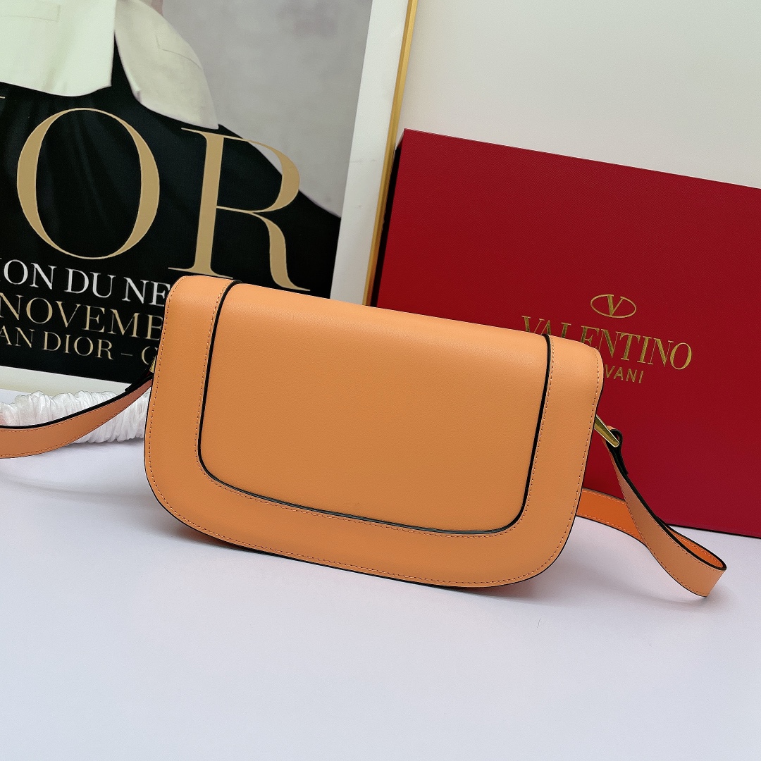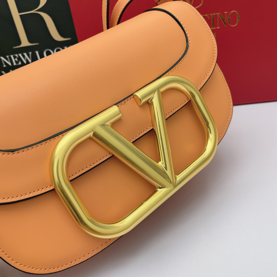 Valentino’s early spring runway collection features the Valentino Garavani MAXI Crossbody Bag, crafted from premium calf leather. The bag showcases a large metallic logo and comes with an adjustable shoulder strap. It is adorned with vacuum-plated metal hardware and a snap button closure. The interior boasts three storage compartments, one slip pocket, and ample capacity. The imported leather provides a soft and luxurious feel.