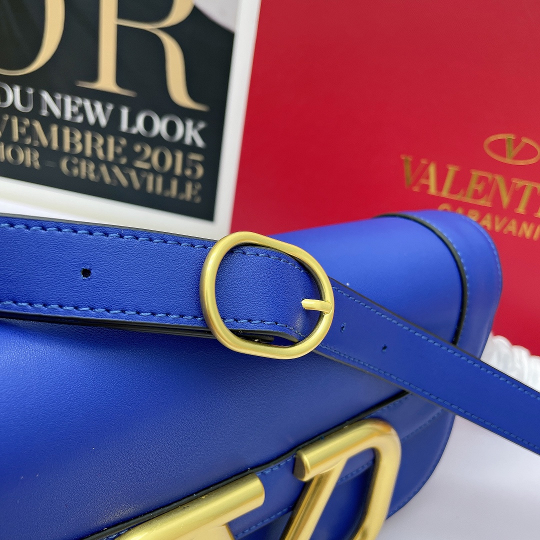 Valentino’s early spring runway collection features the Valentino Garavani MAXI Crossbody Bag, crafted from premium calf leather. The bag showcases a large metallic logo and comes with an adjustable shoulder strap. It is adorned with vacuum-plated metal hardware and a snap button closure. The interior boasts three storage compartments, one slip pocket, and ample capacity. The imported leather provides a soft and luxurious feel.