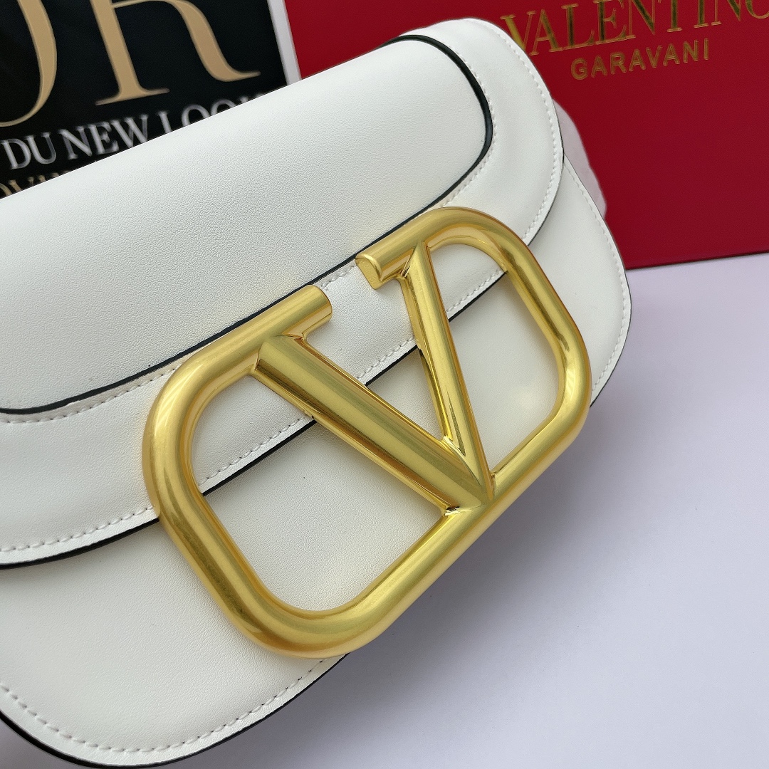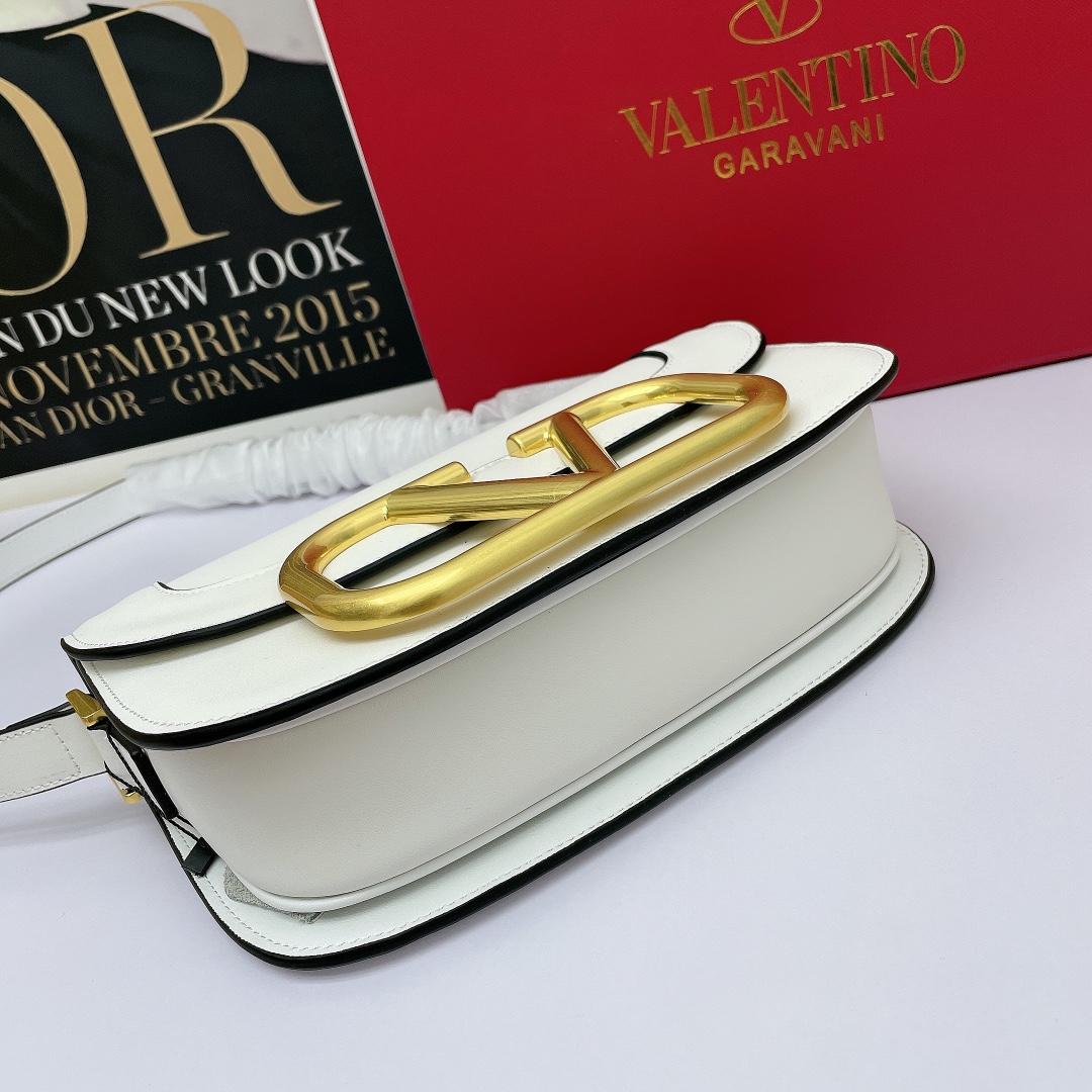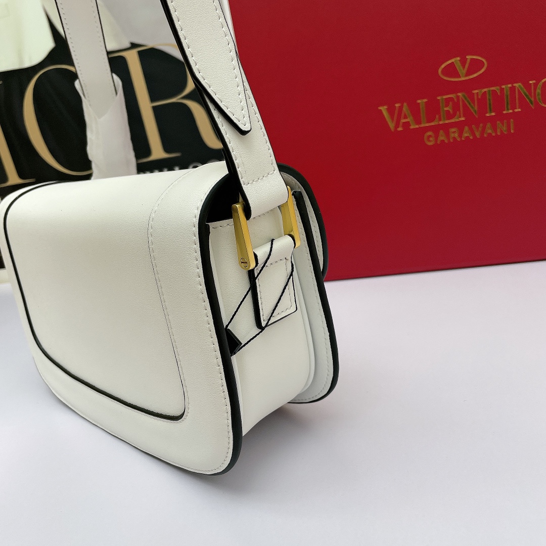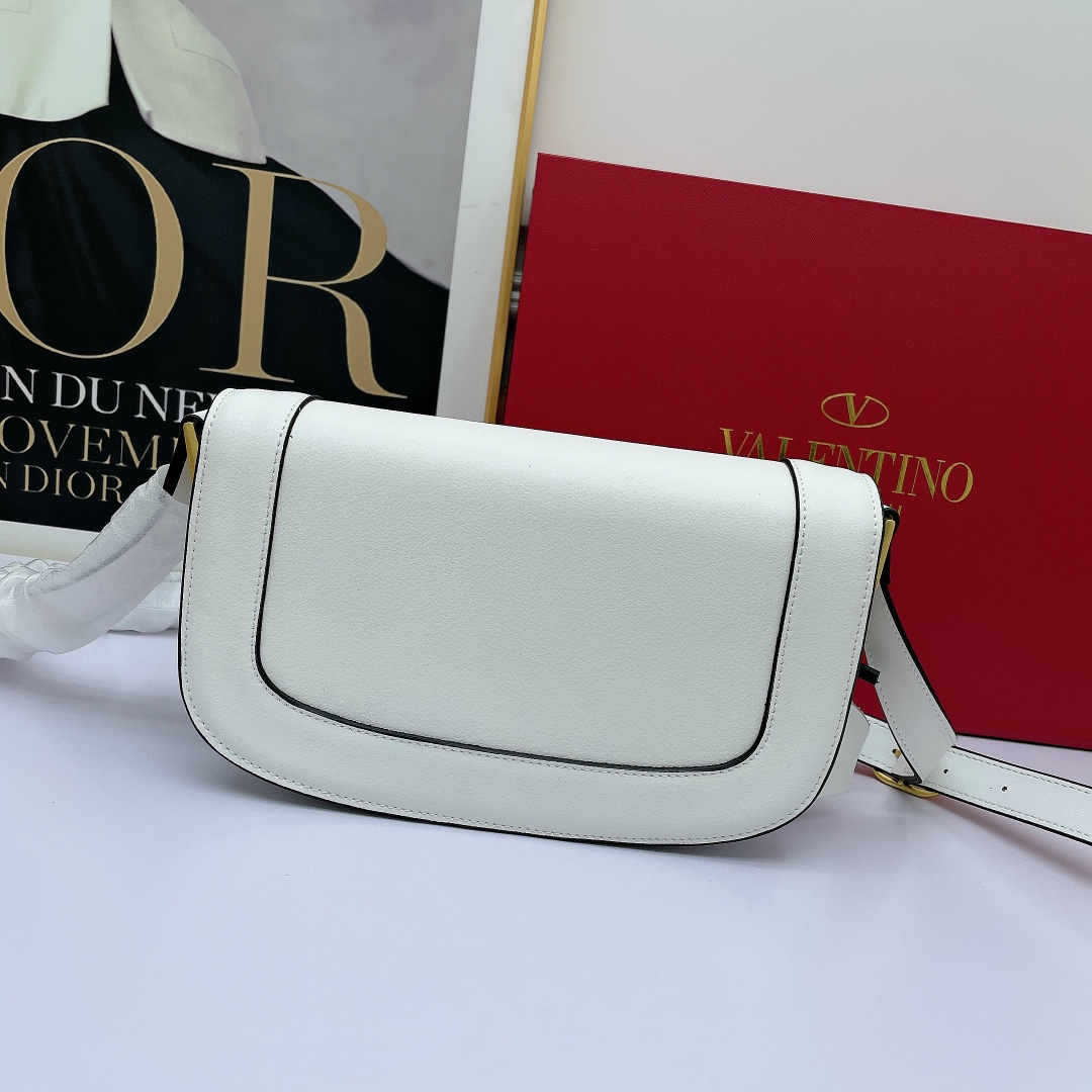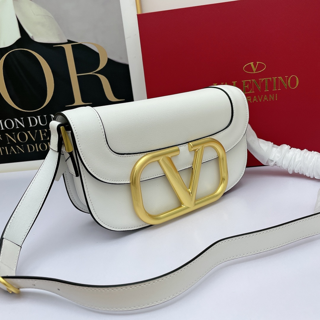 Valentino’s early spring runway collection features the Valentino Garavani MAXI Crossbody Bag, crafted from premium calf leather. The bag showcases a large metallic logo and comes with an adjustable shoulder strap. It is adorned with vacuum-plated metal hardware and a snap button closure. The interior boasts three storage compartments, one slip pocket, and ample capacity. The imported leather provides a soft and luxurious feel.