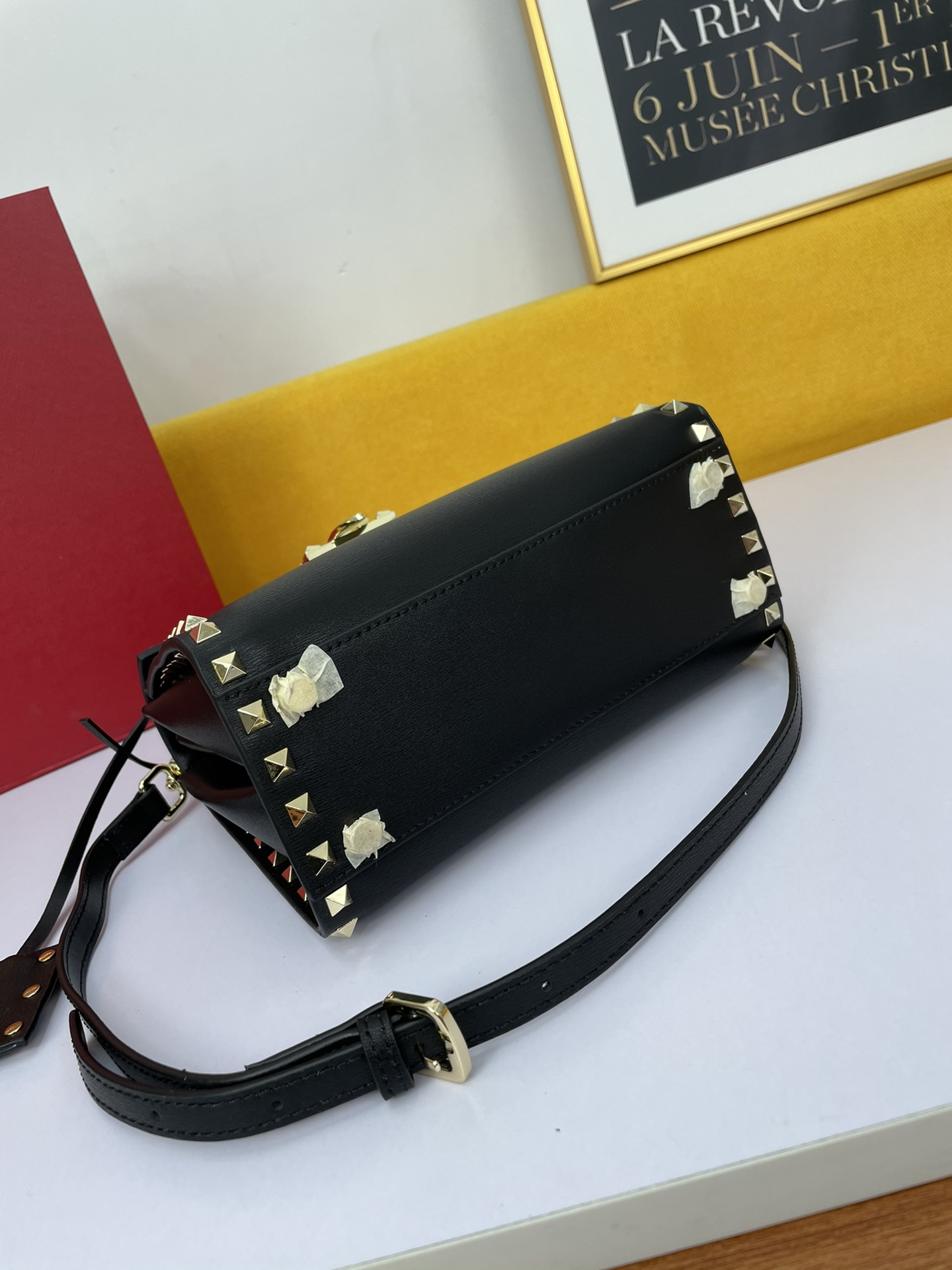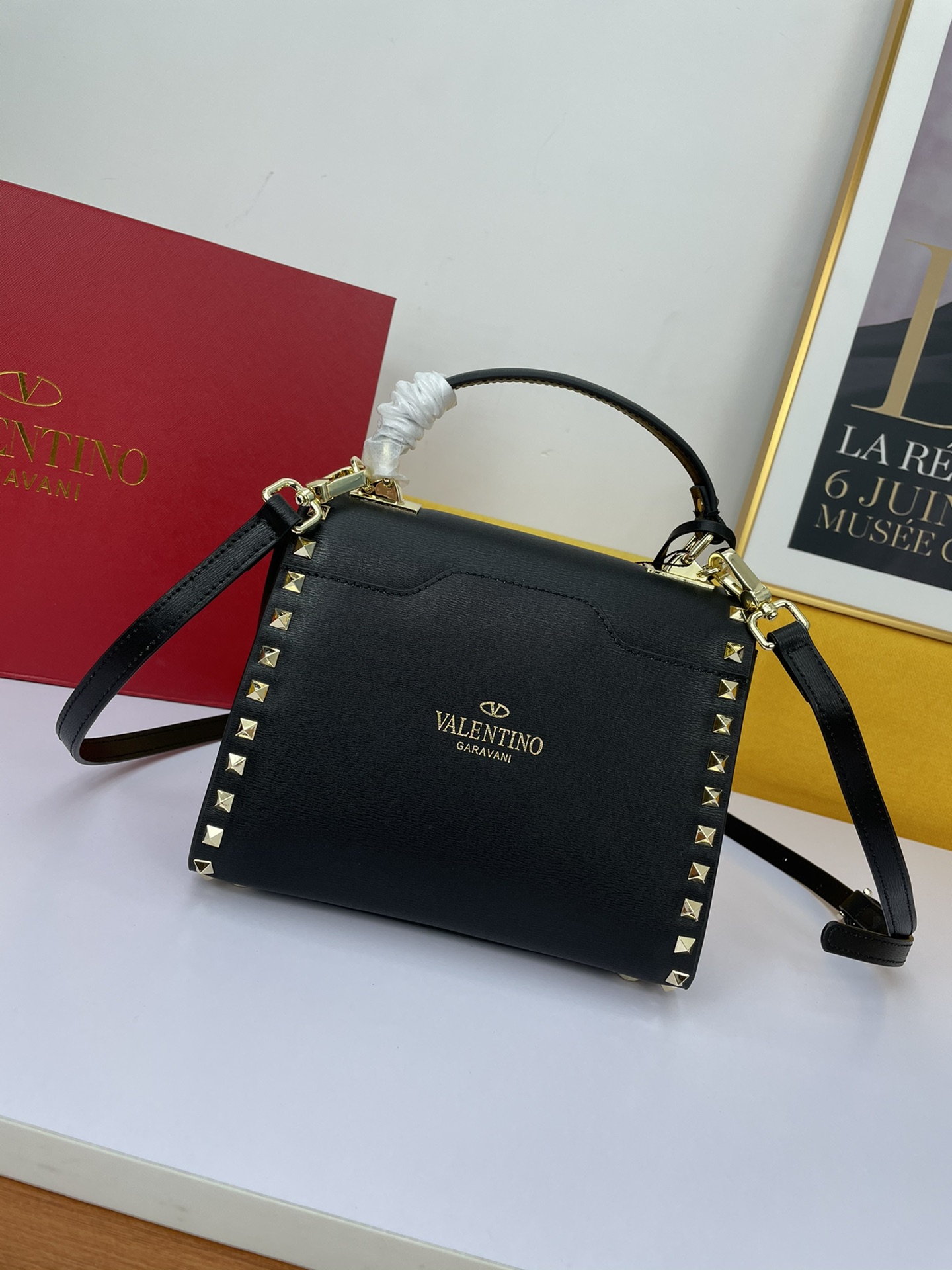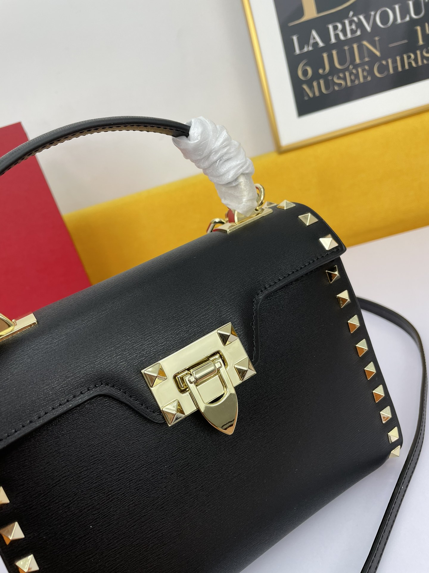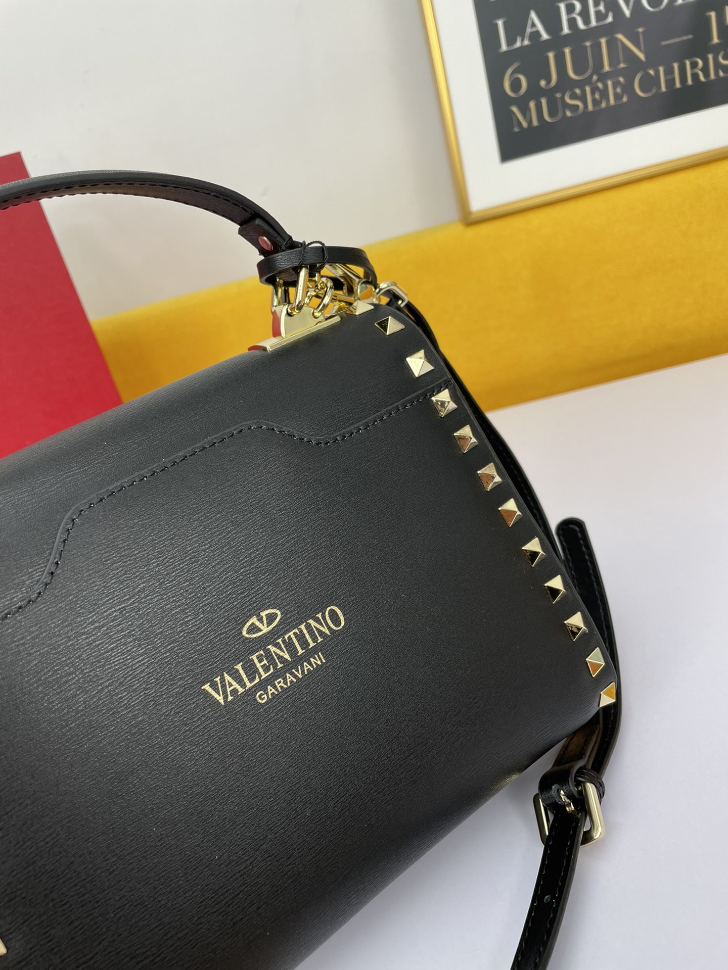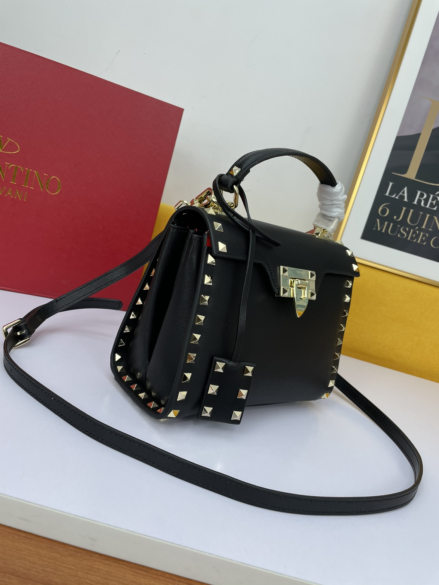 Valentino Garavani Rockstud Alcove Grainy Calfskin Handbag with Decorative Leather Pendant: