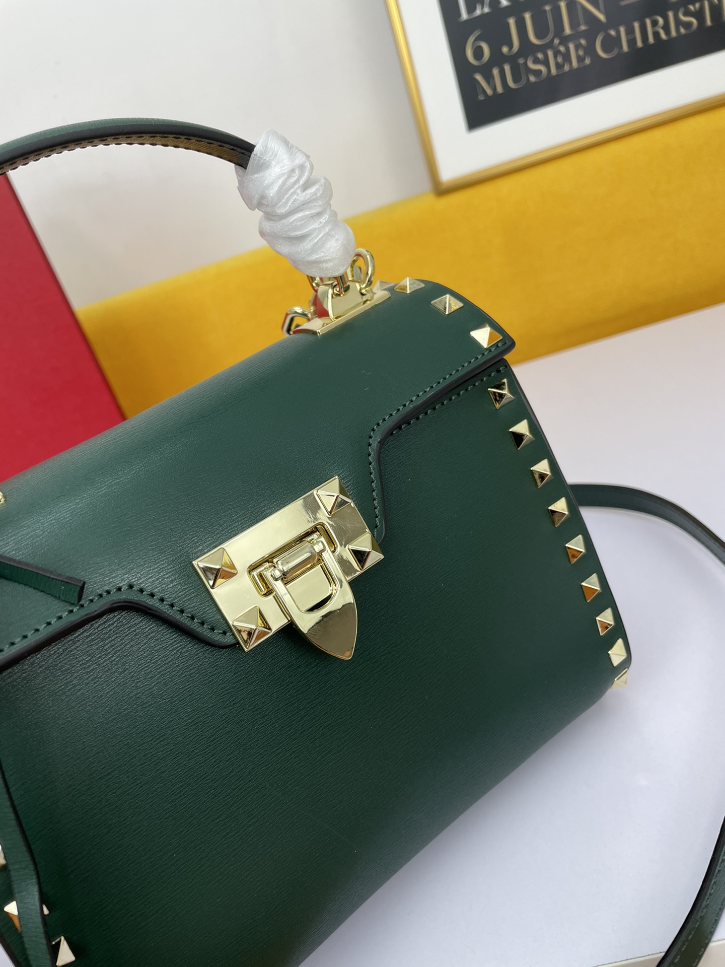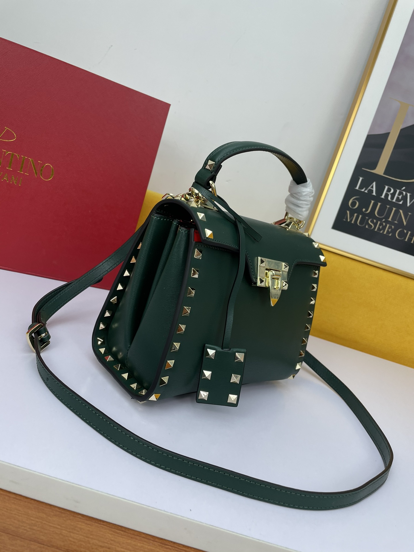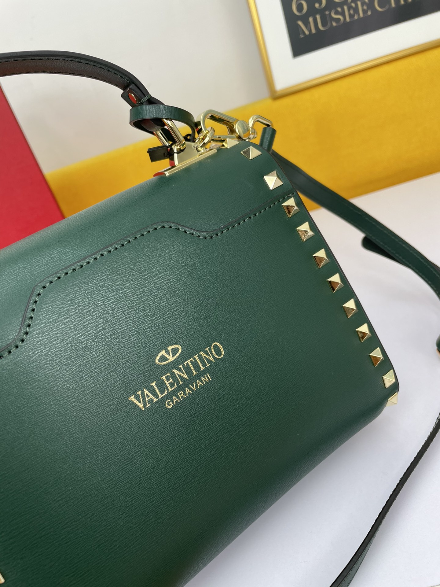 Valentino Garavani Rockstud Alcove Grainy Calfskin Handbag with Decorative Leather Pendant: