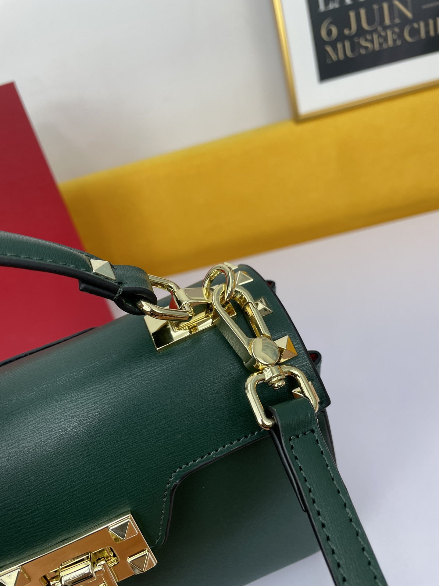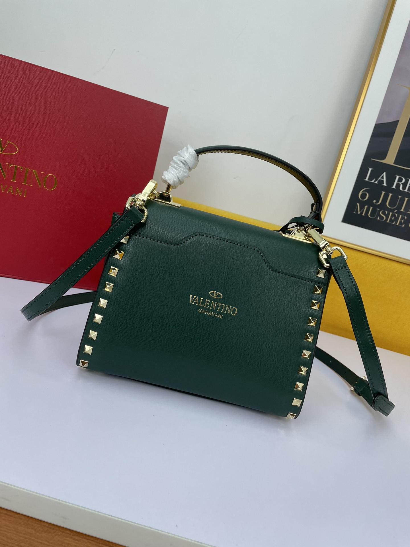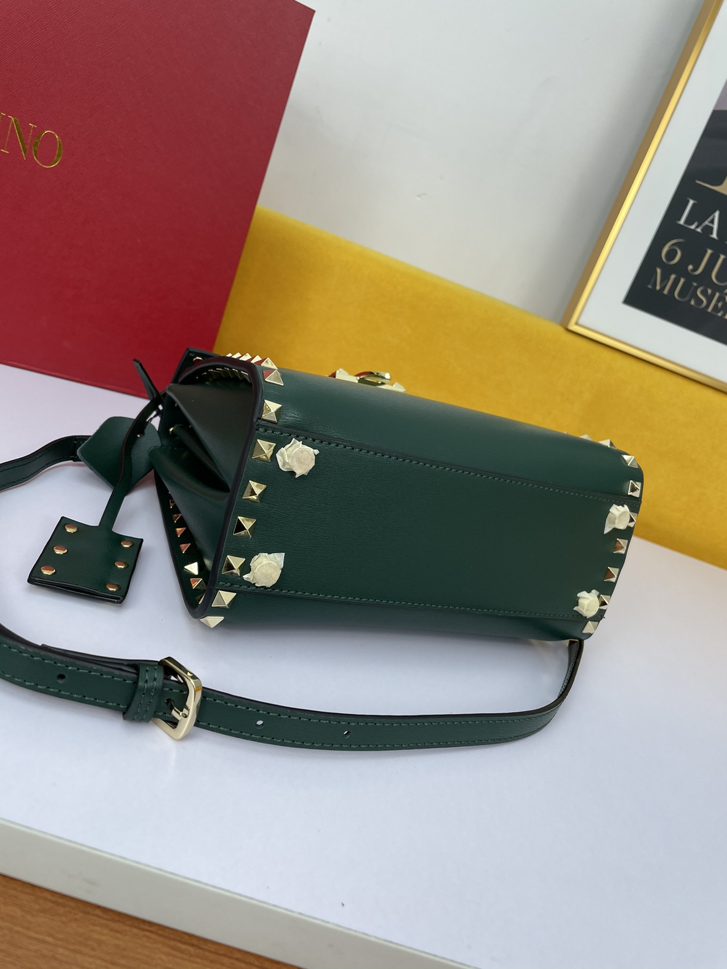 Valentino Garavani Rockstud Alcove Grainy Calfskin Handbag with Decorative Leather Pendant: