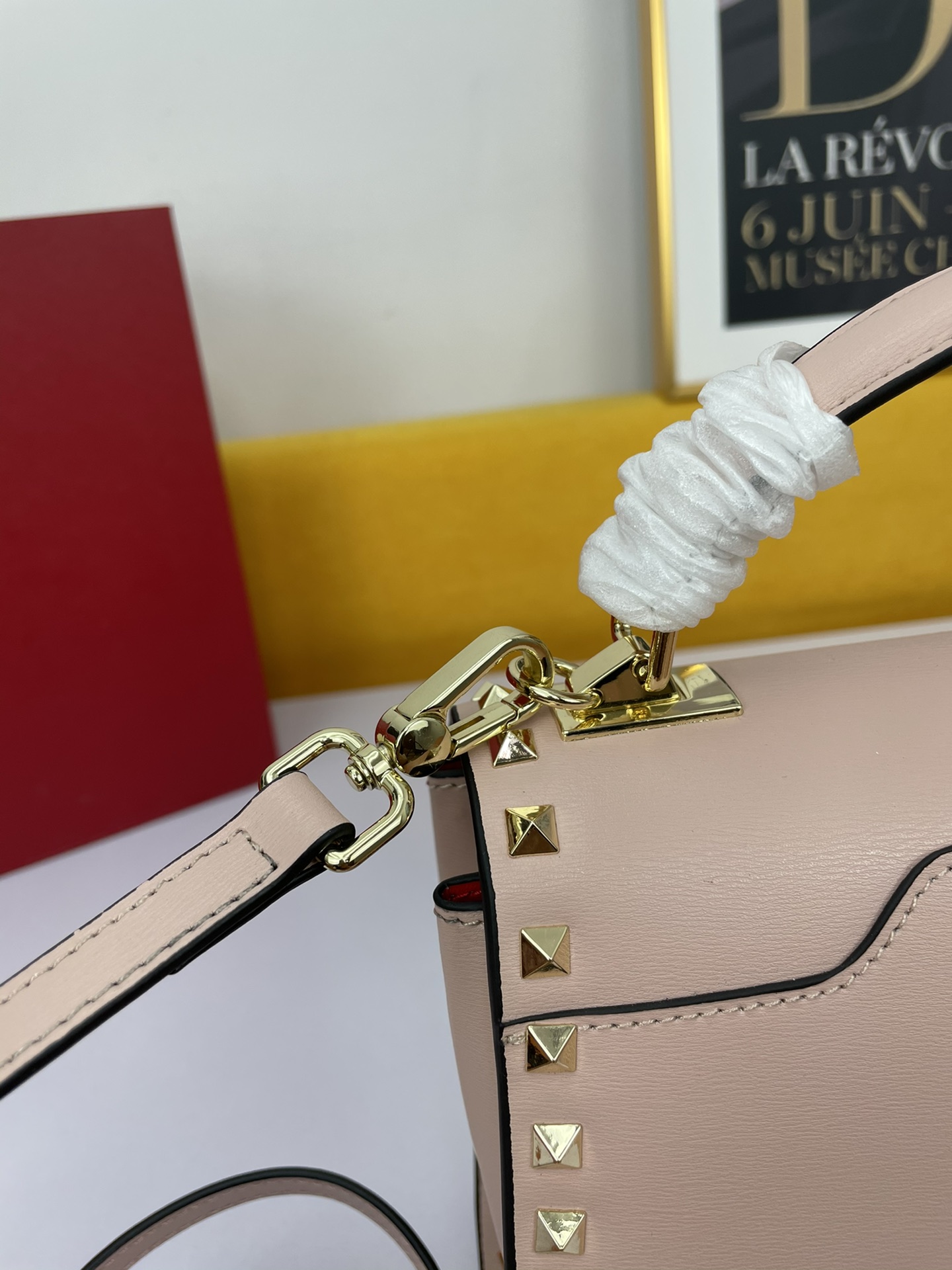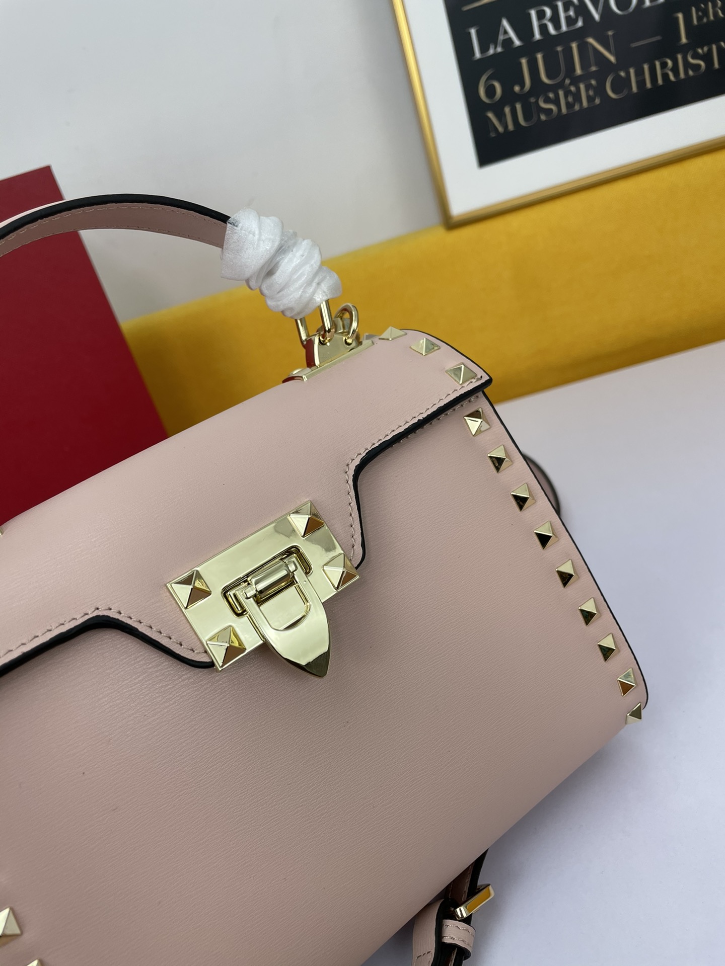 Valentino Garavani Rockstud Alcove Grainy Calfskin Handbag with Decorative Leather Pendant: