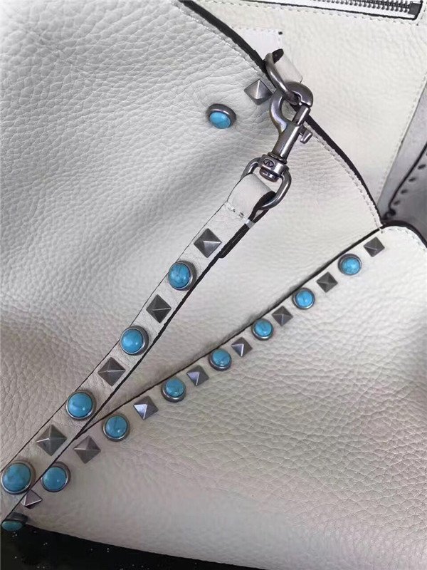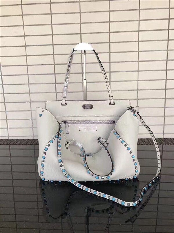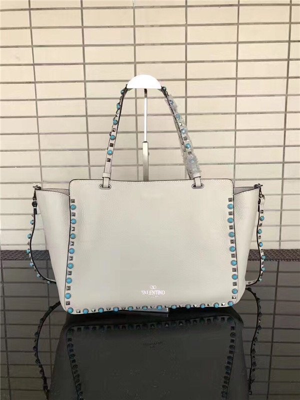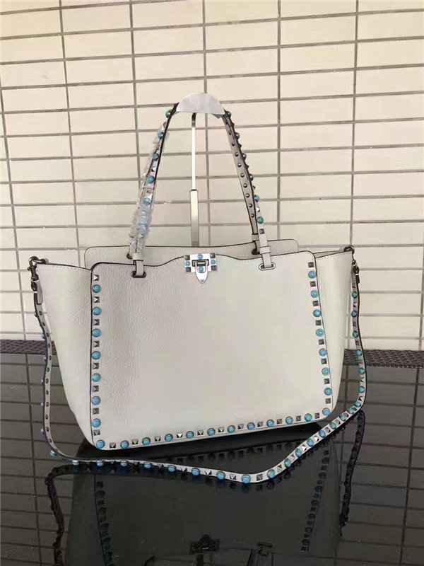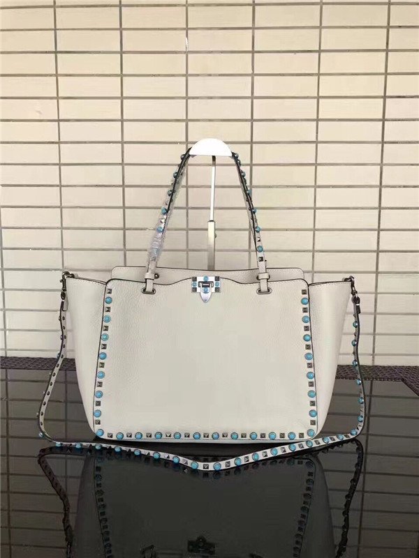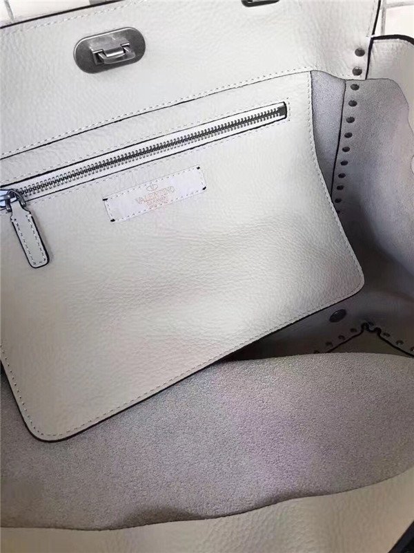 Valentino Garavani Rockstud Rolling medium tote in White Stampa Alce calfskin