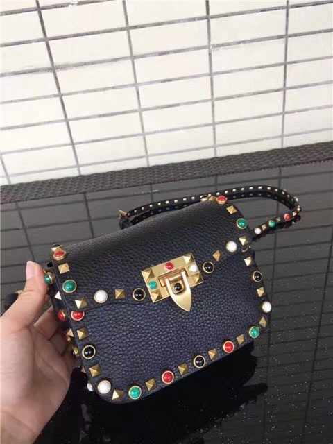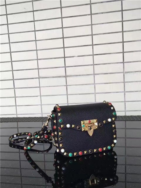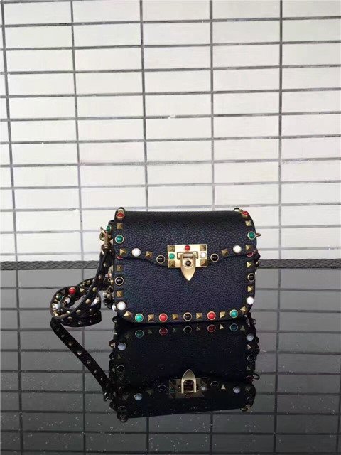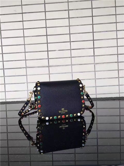 Valentino Garavani Rockstud Rolling cross body bag bag in black Stampa Alce calfskin
