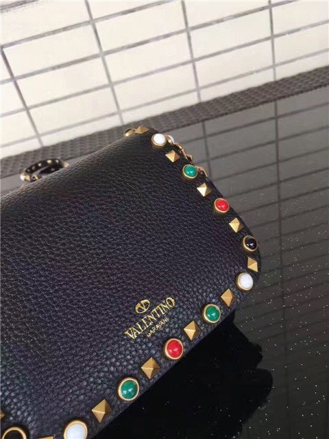 Valentino””s Rockstud crossbody bag is embellished with multicolored cabochons and the house””s signature studs.