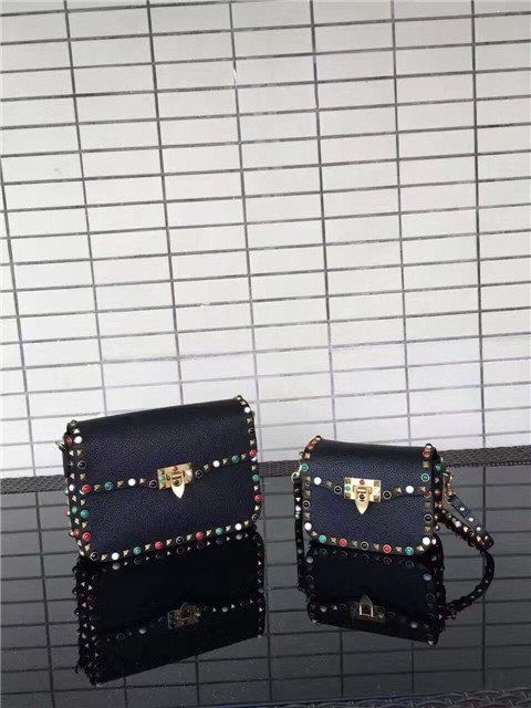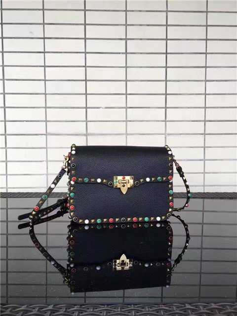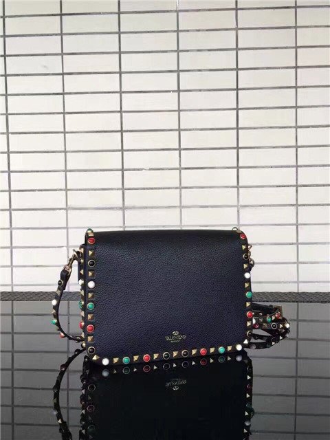 Valentino Garavani Rockstud Rolling cross body bag bag in black Stampa Alce calfskin