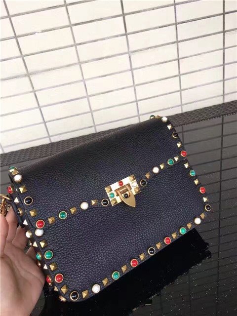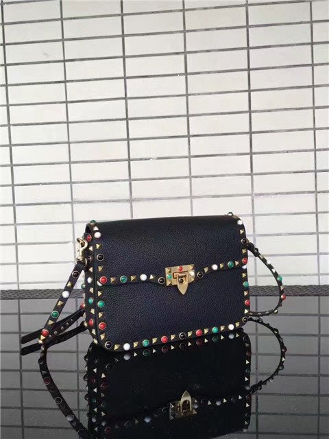 Valentino””s Rockstud crossbody bag is embellished with multicolored cabochons and the house””s signature studs.