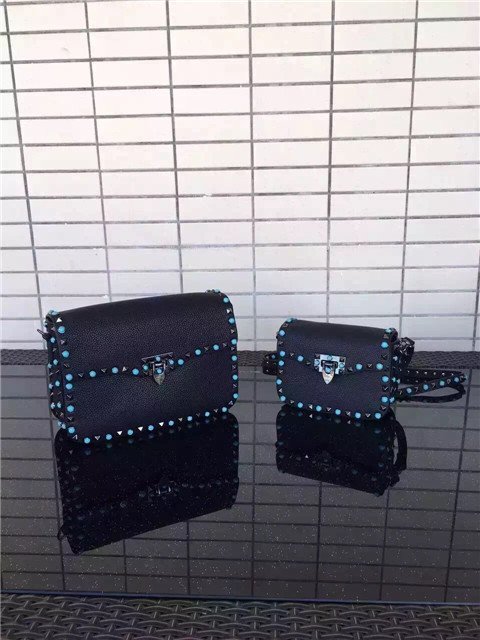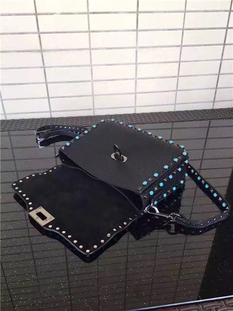 Valentino Garavani Rockstud Rolling cross body bag bag in black Stampa Alce calfskin