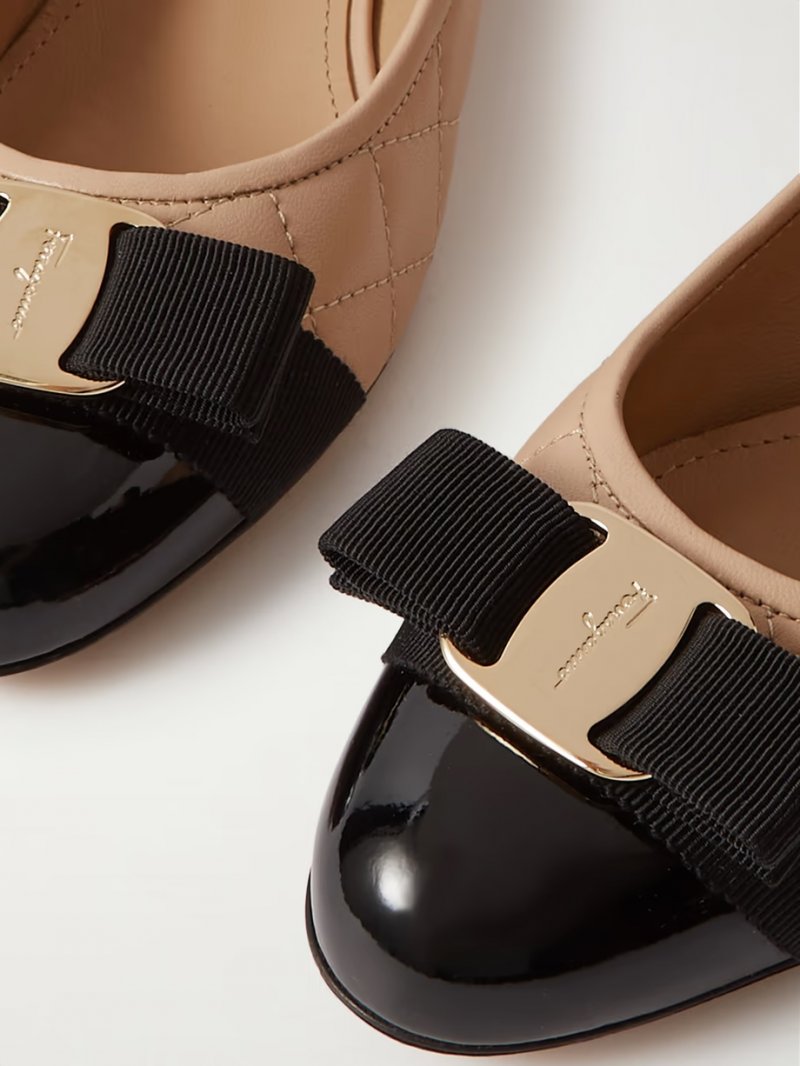 - Beige leather, black patent-leather (Calf), black grosgrain