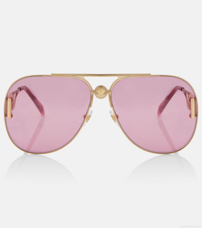 View life through the rose-tinted lenses of these sunglasses from Versace. The gold-framed aviator design is elevated by the signature Medusa head which adorns the temples and bridge.