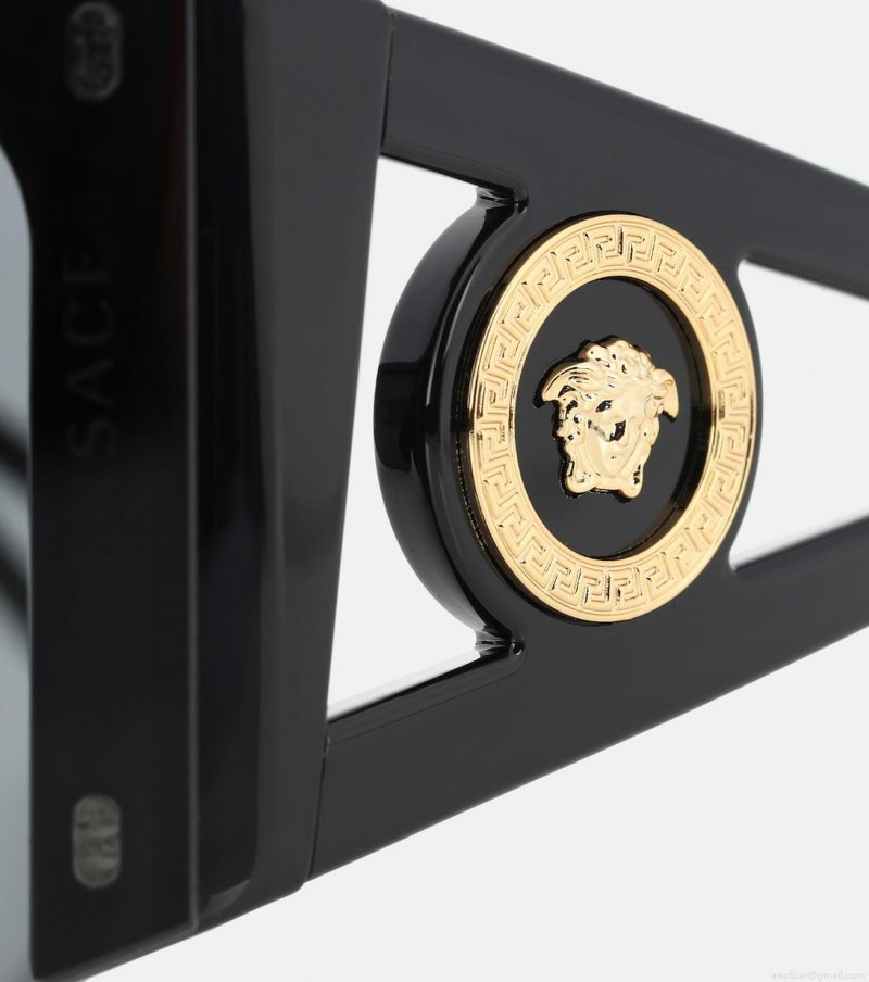The Versace brand is synonymous with statement style, which can be easily achieved with these oversized sunglasses. Made in Italy from acetate, the design will shade the upper half of your face. Gleaming Medusa heads glisten on the arms, providing an opulent finishing touch.