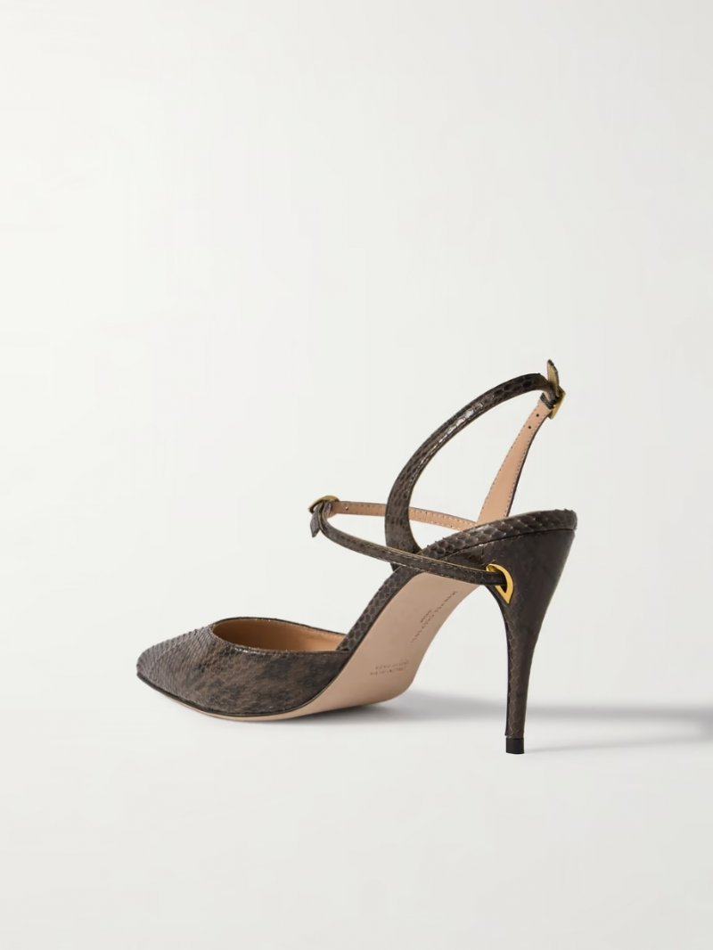 - Buckle-fastening slingback strap, buckle-fastening strap