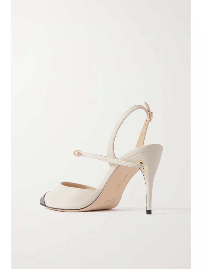 - Cream leather, black patent-leather
