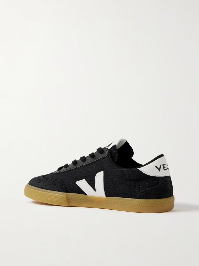 - Black canvas, suede and leather, white leather