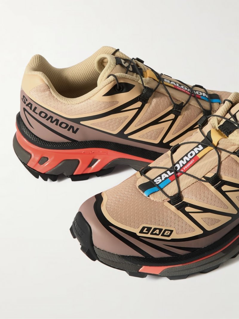 - Beige mesh, black, gray and orange rubber