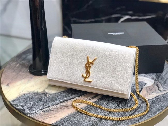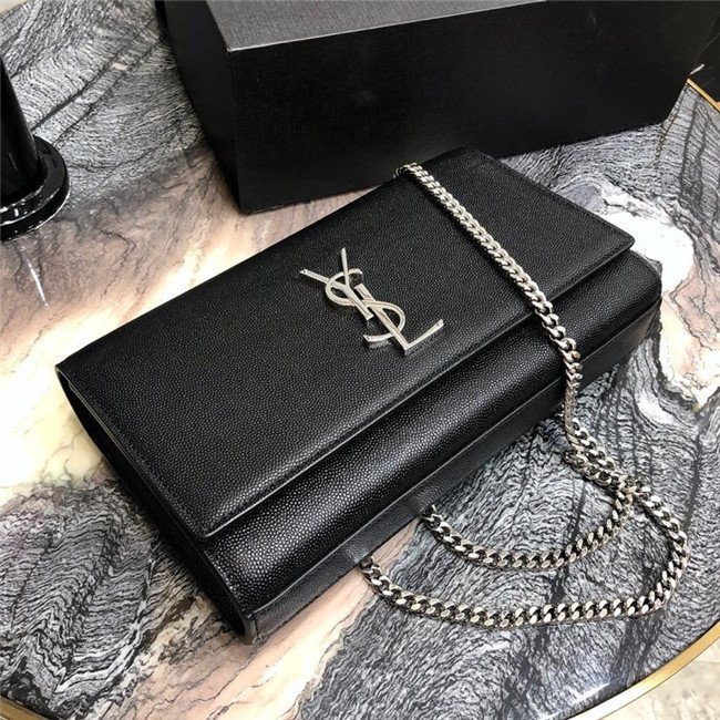 CLASSIC MONOGRAM SAINT LAURENT GOURMETTE CHAIN SHOULDER BAG WITH INTERLOCKING METAL YSL SIGNATURE.