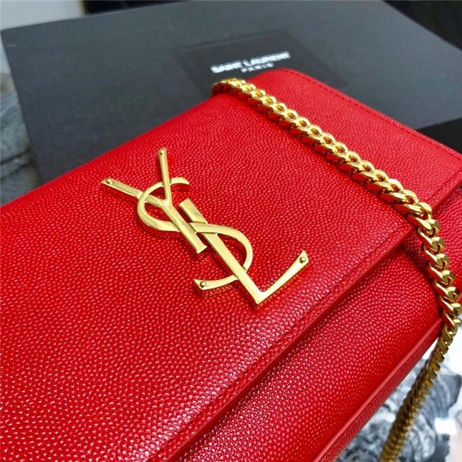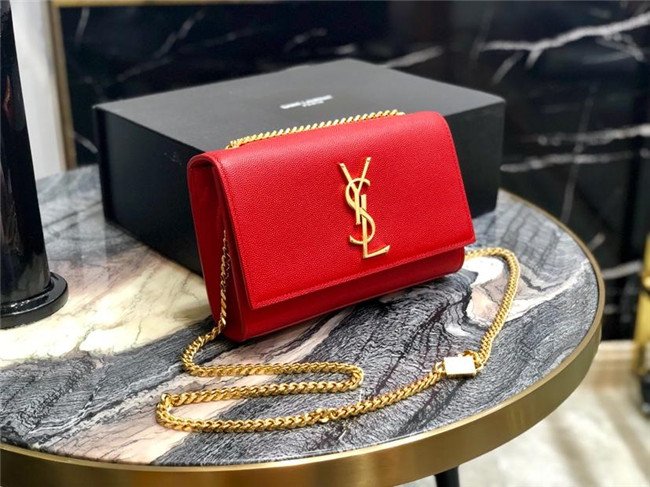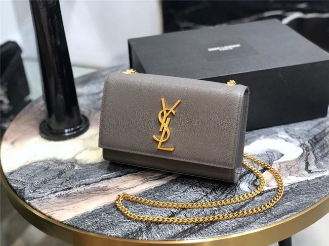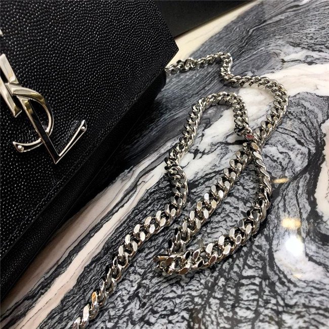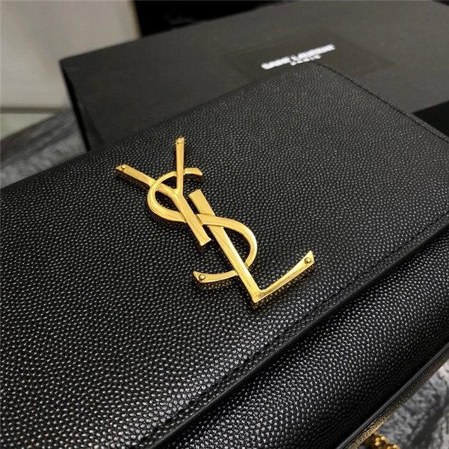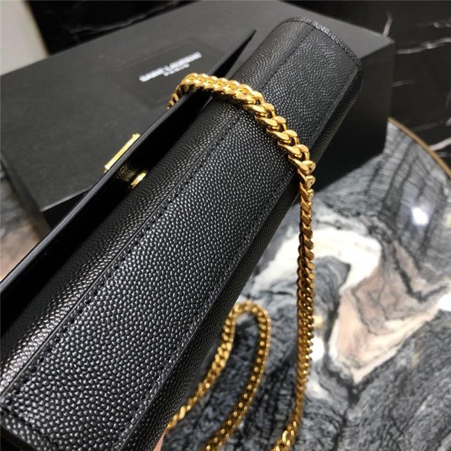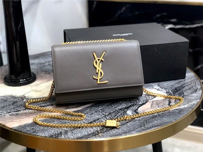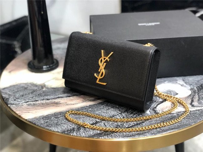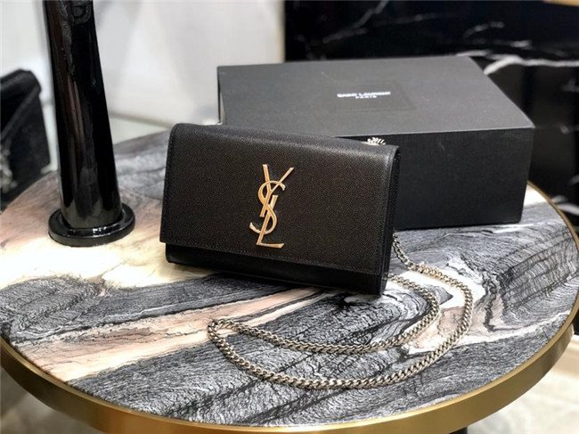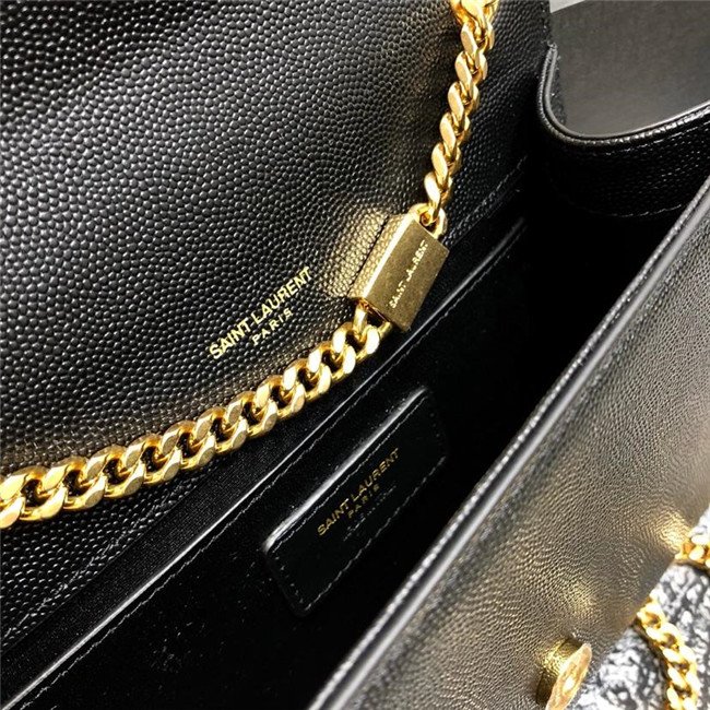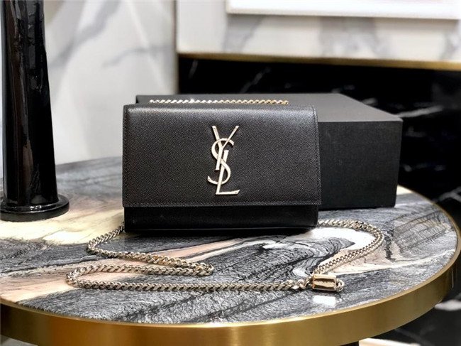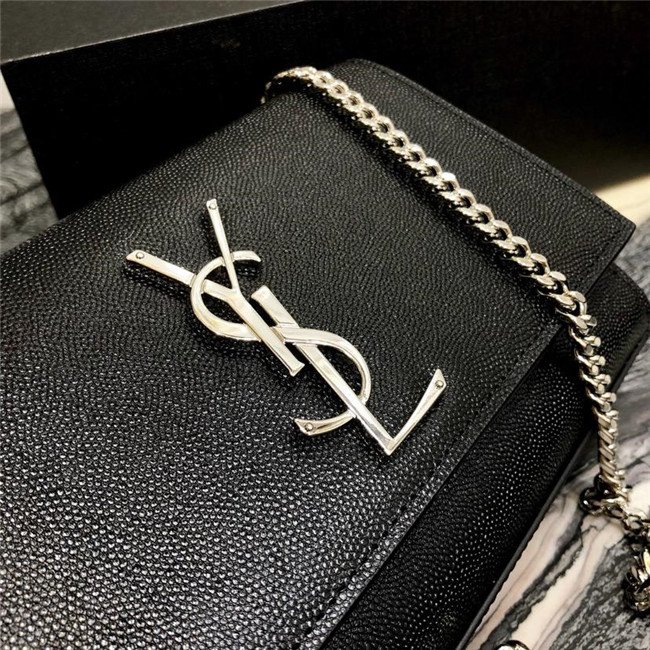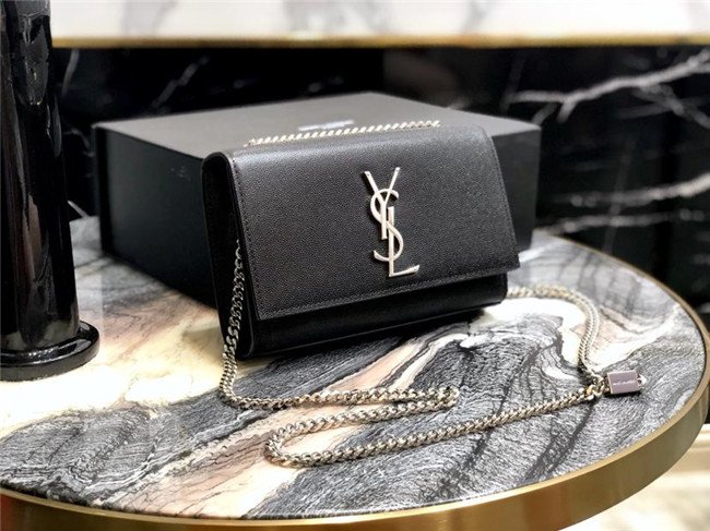 SAINT LAURENT GOURMETTE CHAIN SHOULDER BAG WITH INTERLOCKING METAL YSL SIGNATURE.