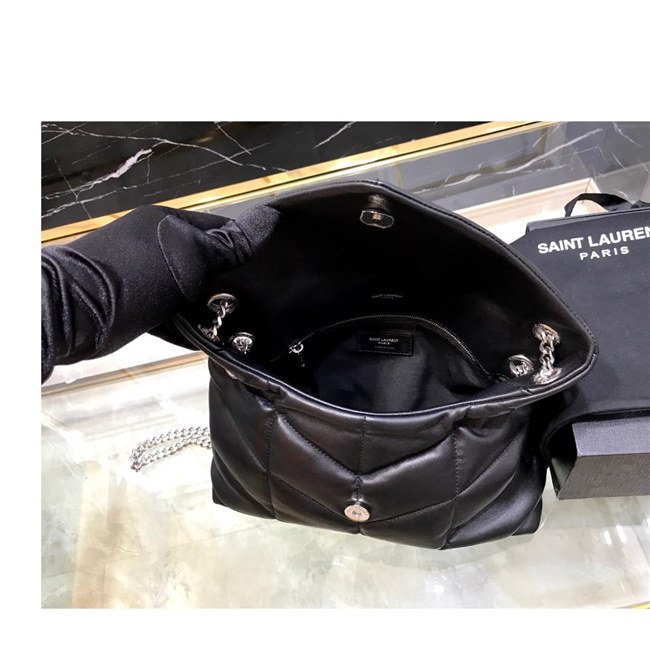 SAINT LAURENT MONOGRAM BAG, DECORATED WITH METAL YSL INITIALS AND FEATURING A LEATHER AND CHAIN STRAP THAT CAN BE WORN DOUBLED AS A SHOULDER STRAP.