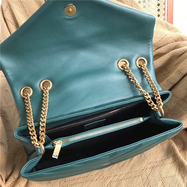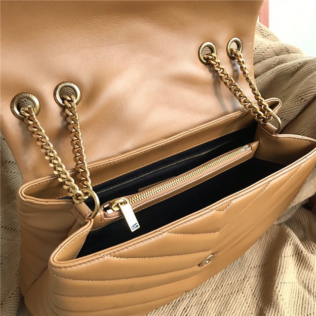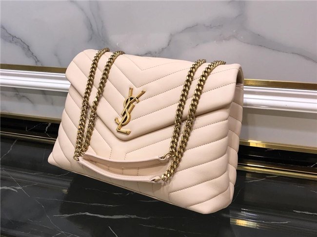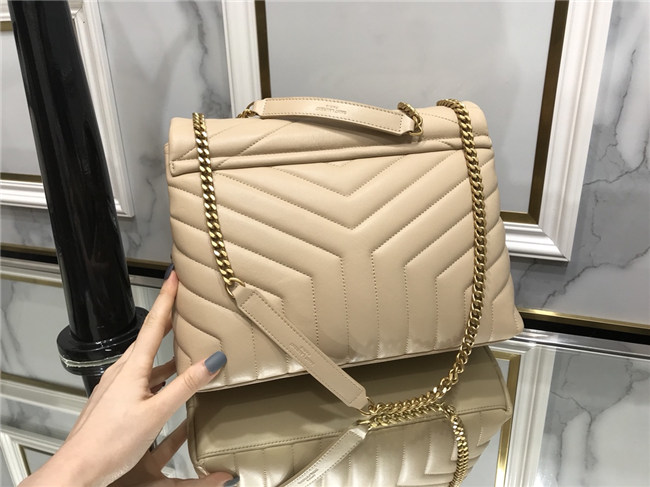 METAL AND LEATHER CHAIN STRAP AND “Y” MATELASSE STITCHING.