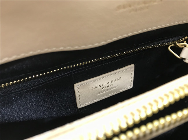 SOFTLY CONSTRUCTED FLAP FRONT BAG WITH METAL INTERLOCKING YSL SIGNATURE,