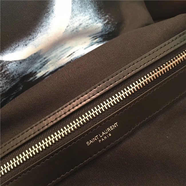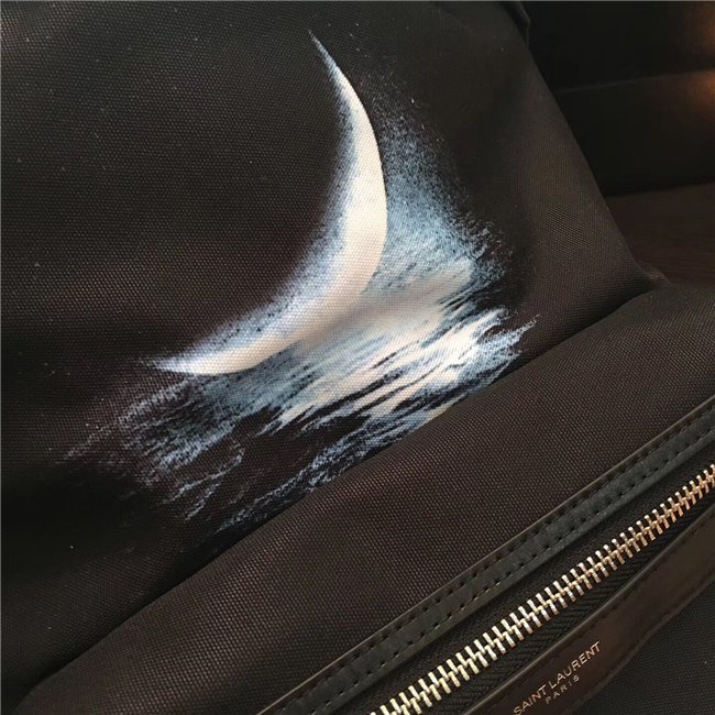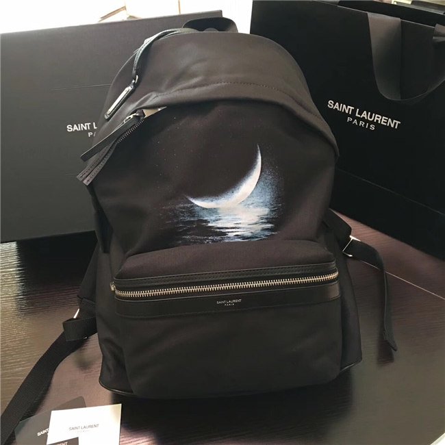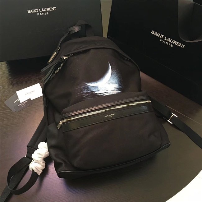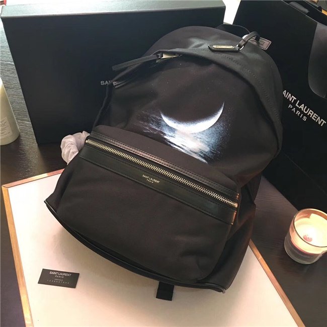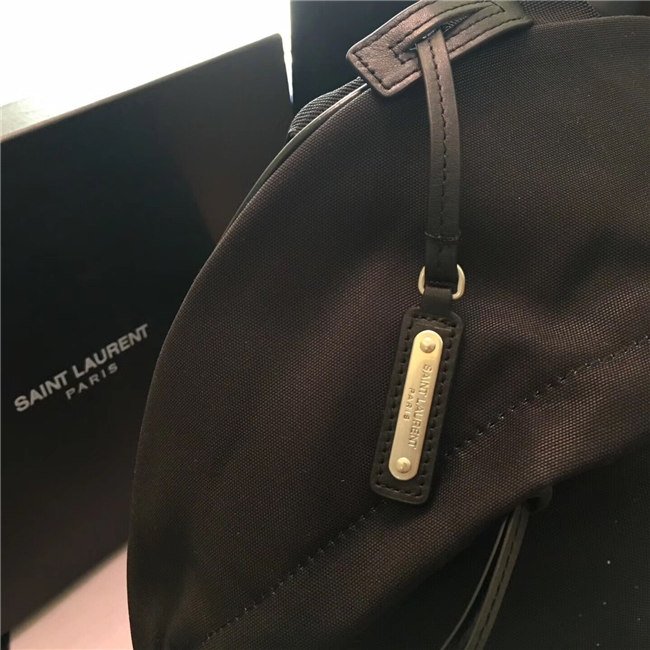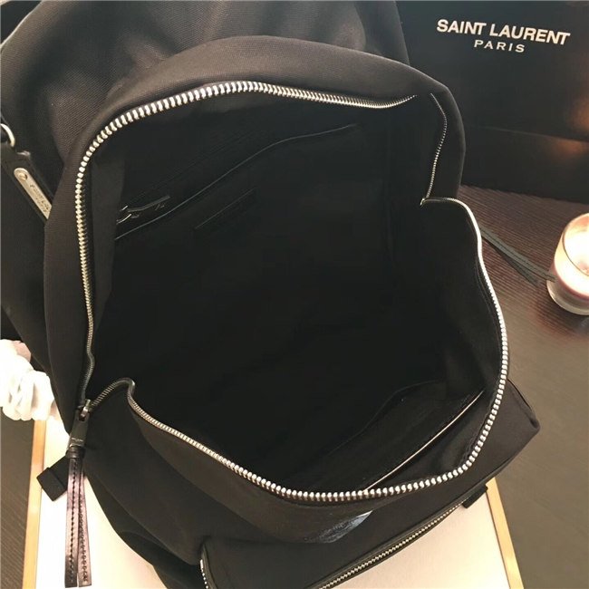 Yves Saint Laurent City Moonlight Backpack With Pocket Patch Black Twill And Leather
