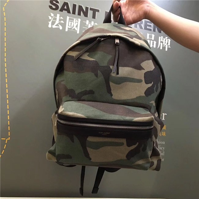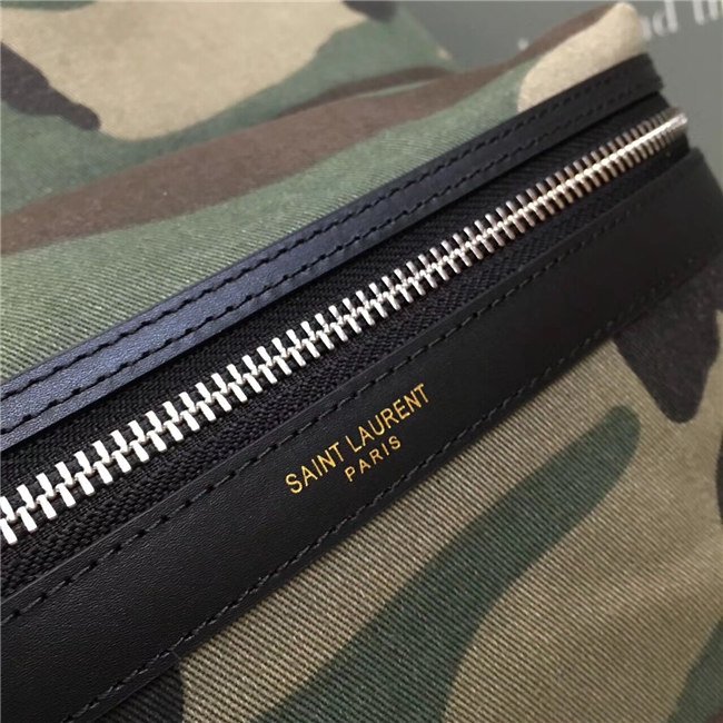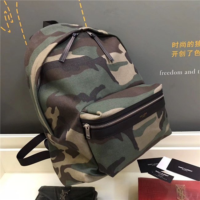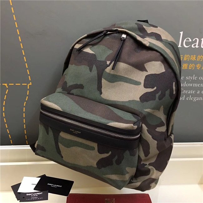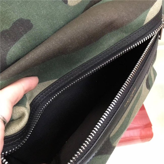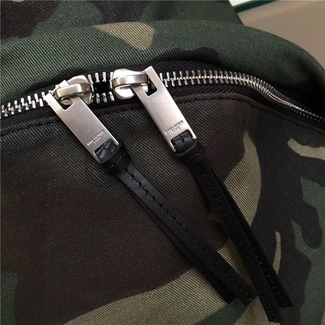 Yves Saint Laurent Classic City Backpack Khaki Cotton Gabardine Camouflage And Black Leather