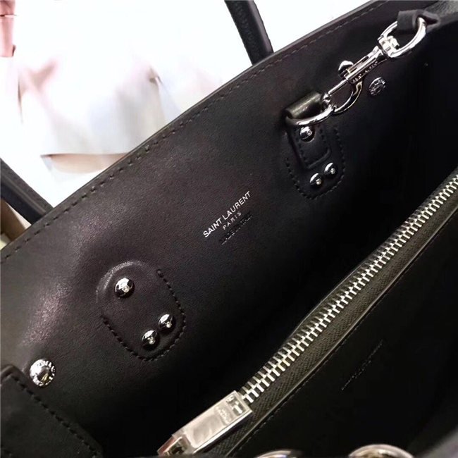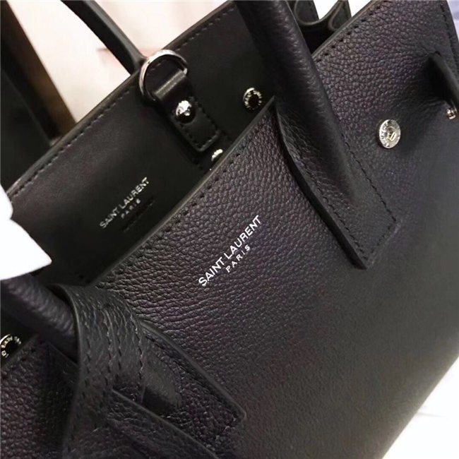 SIGNATURE SAINT LAURENT BAG WITH SOFT CONSTRUCTION, TUBULAR HANDLES, ACCORDION SIDES, COMPRESSION STRAPS WITH TABS, EMBOSSED SAINT LAURENT SIGNATURE AND REMOVABLE, ADJUSTABLE SHOULDER STRAP.