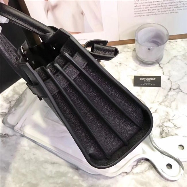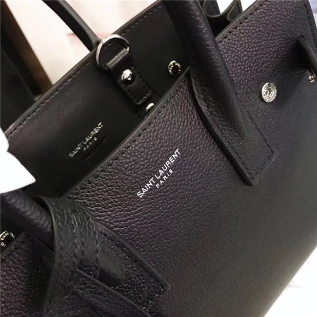 SIGNATURE SAINT LAURENT BAG IN GRAINED LEATHER WITH SOFT CONSTRUCTION, TUBULAR HANDLES, ACCORDION SIDES, COMPRESSION STRAPS WITH TABS, EMBOSSED SAINT LAURENT SIGNATURE AND REMOVABLE, ADJUSTABLE SHOULDER STRAP.