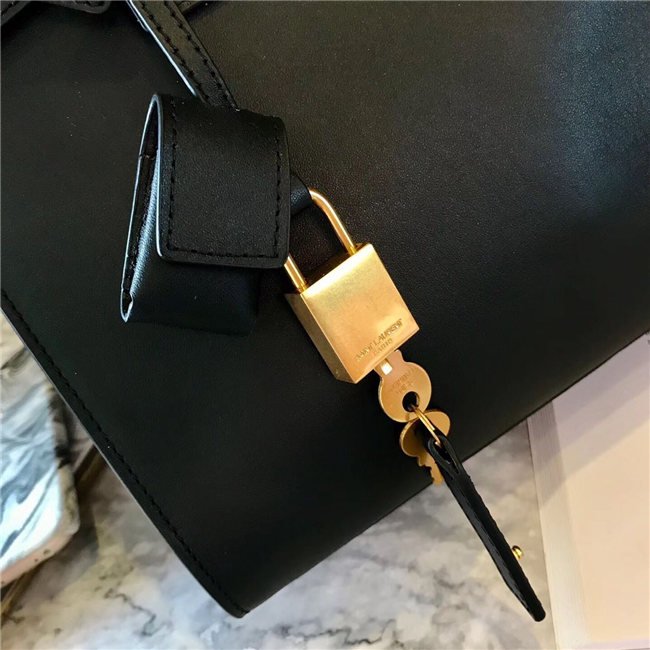 REMOVABLE LEATHER STRAP WITH SAINT LAURENT ENGRAVED METAL PLAQUE AND LEATHER ENCASED PADLOCK