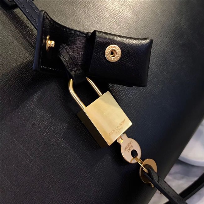 SIGNATURE SAINT LAURENT BAG WITH TUBULAR HANDLES, ACCORDION SIDES, COMPRESSION STRAP WITH TABS, EMBOSSED SAINT LAURENT SIGNATURE AND REMOVABLE SHOULDER STRAP.