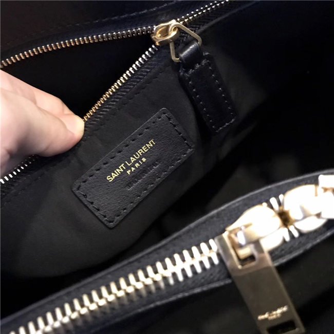 SIGNATURE SAINT LAURENT BAG WITH TUBULAR HANDLES, ACCORDION SIDES, COMPRESSION STRAP WITH TABS, EMBOSSED SAINT LAURENT SIGNATURE AND REMOVABLE SHOULDER STRAP.