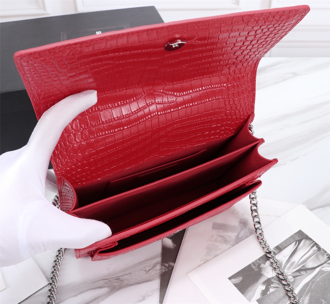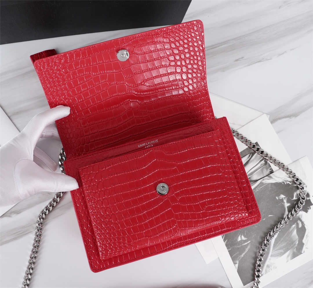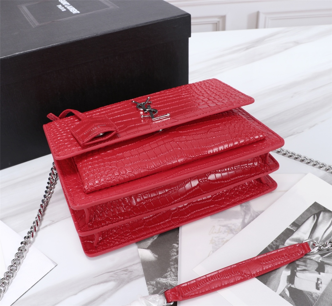 The latest crocodile pattern at the counter, the sunset bag is made of top-grade imported original cowhide with customized craftsmanship. The genuine version features impeccable workmanship, including vacuum plating of antique silver hardware and leather-like metallic finish. The crocodile pattern is simply flawless!