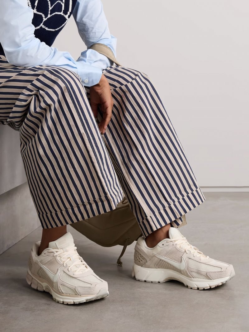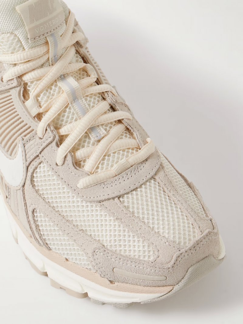 - Beige leather, suede and rubber, off-white mesh
