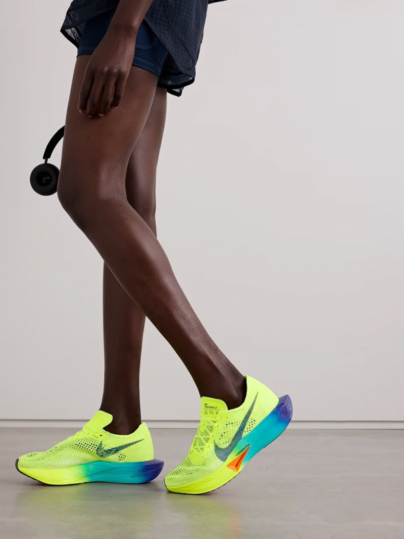 - Chartreuse and navy Flyknit